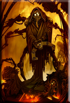 - Некроны, спустя много лет экономии энергии и поездок на пирамидках, наконец-то заимели и себе аналога титана - Сераптековый Тяжёлый Конструкт, живучее паукообразное нечто, оснащенное мощным дальнобойным вооружением (два Синаптических Облитератора, весело выпускающих мозги через уши всем, кому не посчастливилось попасть под обстрел + два Трансизмеренческих Проектора для добивания переживших залп из Синаптических Облитераторов / два Генератора Сингулярности), не самым плохим оружием ближнего боя и, что интересно, весьма и весьма быстрое. Помимо этого, некоторым аналогом титана можно считать Мегалит — хтоническую пирамидальную вундервафлю, таскающую обычные пирамидки-Монолиты в грузовом отсеке