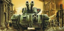 «Леман Расс» (Leman Russ) — человек и пароход примарх и танк. Строго решающий инструмент имперского, хаоситского или орочьего (если удалось слутать) танкового раша, благо стоит для своих ТТХ немного, а по вооружению и бронированию превосходит почти все машины своего размера или мельче. Главный минус шушпанцера — никакая скорость, но с лобовой броней, от которой отскакивают лучи лазпушек и болванки рейлганов, это уже не критично. По виду французский танк Char B1 тридцатых годов, только со спонсонами (опционально) и формой гусениц в духе британского Mark IV времен Первой мировой. Также имеется набор болтеров/огнеметов/мельт/плазм для пущего развлечения набигающих пехотинцев-супостатов. Существуют десятки именных вариантов компоновки вооружения: тут вам и плазмы, и лазпушки, и автопушки, и осадные орудия — налетай, не скупись!