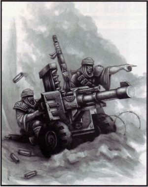 «Химера» (Chimera) — ещё один БТР, но на этот раз гвардейский. Выгодно отличается от аналогов сугубо символической ценой, вместительностью, а также умением не тонуть даже в самых лютых говнах и плавать по воде. Вооружен этот мясовоз круче спейсмаринского аналога, а вот броню, кроме лба, можно пробить хоть из болтера. Вследствие частых потерь в бою и долбоебов в Муниторуме «Химер» вечно не хватает, и гвардейцы их очень ценят, поскольку это чуть ли не единственное средство для сглаживания чудовищной медлительности и неповоротливости ИГ. На этой платформе делается другая легкая бронетехника: артиллерия (например, «Василиск»), БМП («Адская гончая» и ее вариации), техника техподдержки (тягач «Атлас»), зенитная самоходка «Гидра» и ракетные комплексы «Мантикора» и «Смертельный удар».