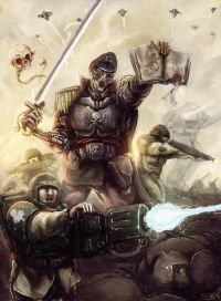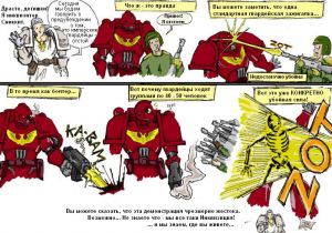 (спойлер: механика настолки) защитные поля, мощная броня, идейные верования, обилие бойцов куда сильнее человека и то, что легче хорошенько освятить и заколдовать один раз рубило, чем поставить на поток освящение боеприпасов. Справедливости ради, если посчитать, сколько народу в Вахе гибнет от всякого рода орбитальных бомбардировок, а сколько — от удара тем или иным холодным оружием, то выйдет соотношение примерно 1000000:1. Доброе, вечное и светлое воены Императора и Его врагов несут следующими инструментами: