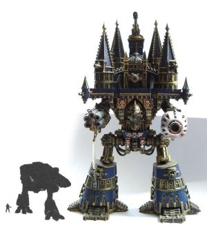 - «Император» (Imperator) и «Разжигатель войны» (Warmonger) — cамые здоровенные титаны, по совместительству самые здоровенные наземные юниты в Вахе. Декорированы как соборы католической Европы. Различаются только тем, что первый класс вооружен пушками относительно малой дальнобойности, но большей мощи, для истребления других титанов, а второй — артиллерией, для зачистки местности от толп более мелких целей с безопасного расстояния. В наличии много пушек, из которых две наручные достаточно хтоничны, чтобы сносить одним залпом целые города, плюс в бастионах на плечах и в ногах сидит по роте злобных скитариев, чтоб отбиваться от пихотов, подошедших вплотную, или высадившихся на сам титан сверху. Больше не производятся, а на тех, что остались со времен Ереси, механикусы молятся, как на святыни, сдувают пылинки, а в бой пускают только в самом крайнем случае. Существует отряд из дюжины таких чудовищ, работающих как пативен для целых восставших миров.