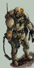 - и, барабанная дробь, Охотничье копьё (Hunting lance) также не обойдено вниманием имперских тактиков и стратегов. А разгадка одна: к обычному холодному оружию его можно отнести лишь на первый взгляд, ибо наконечник на обычном древке не заточенный кусок металла, а хитрый заряд взрывчатки (по правилам настолки — приравненный к силовому оружию!), естественно, одноразовый. Да, это в Империуме, где есть лазеры, плазма и прочие ништяки. Применяют эти ПТ-копья на практике отряды конных «всадников-налетчиков» (Rough riders) и, лихо набижав, к примеру, на танковую колонну, должны после переключаться на лазпистолеты или сабельки, если, конечно, кто-то еще остался. Ну а что, надо же чем-то противотанковым вооружать воинственное быдло с отсталых миров (даже если там оно и вовсе илита и знать) и хоть как-то поставить на службу Империуму тамошних коняшек.