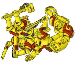 Эверсор (Eversor, лат. разрушитель) — специализирутся на образцово-показательных кровавых убийствах, внушающих чувство зависти кхорнитам и бессильное отчаянье всем остальным. Сидят на допингах, позволяющих бегать как лошадь и разрубать семь спейсмаринов пополам одним ударом ребра ладони. Нечувствительны к боли, де-факто камикадзе. Рвут всех и вся врукопашную, пользуясь как вполне банальным силовым мечом, так и садо-мазо перчаткой мейд ин Каммораг, добавляя из спаренного пистолета, или вообще подручными средствами. Кровь у этих товарищей от переизбытка веществ кислотна, аки у Чужих. При несовместимых с жизнью ранениях взрываются. До поры до времени от греха подальше содержатся в стазисе, на место доставляются при помощи дроп-подов.