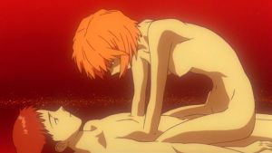 - Сцену, в которой Синдзи приходит в палату интенсивной терапии к Аске, пребывающей в глубокой коме. Видно ручку двери, слышны всхлипы Синдзи, затем показывают его ладонь в сперме. Зачем это показали, неясно. Может, решили, что зрители дружно последуют примеру главгероя? Но аскафаги и так на нее фапают!